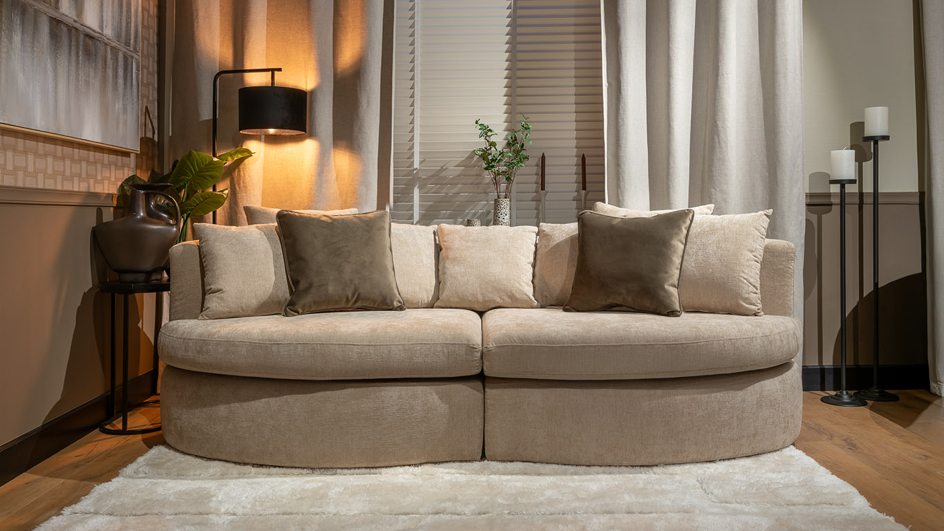 Maak van de Ella hét pronkstuk van jouw interieur. De sierlijke ronde vormen geven het model een unieke uitstraling. De Ella is dé plek om te ontspannen, loungen of genieten van een gezellig moment. Dankzij het unieke Tiger Touch® interieurvering geniet je altijd van een ultiem zitcomfort. Wij zijn tenslotte de makers van het lekker loungen! Maar dat is nog niet alles: met keuze uit meer dan 200 trendy meubelstoffen, talloze opstellingen en verschillende opties stel je de Ella volledig samen naar jouw wensen. Ga voor een compacte 3-zits, royale loungebank of ruime hoekbank – alles is mogelijk! Maak van de Ella jouw unieke bank, speciaal afgestemd op jouw stijl en interieur. Laat jouw woonkamer stralen met deze luxe blikvanger!