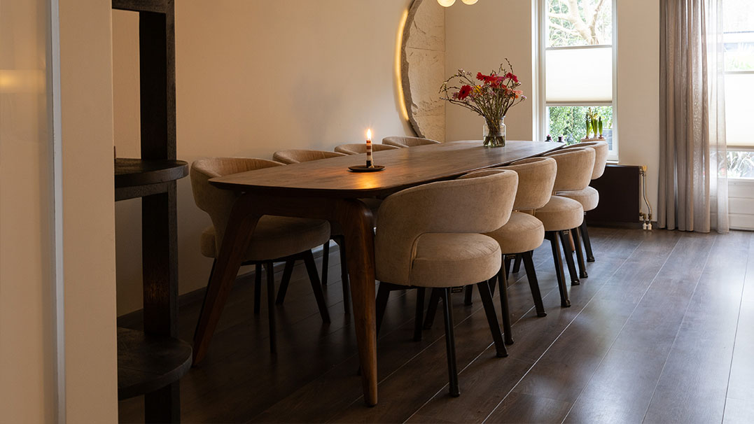 Deze week gaat Djamilla aan de slag bij Joanna en haar dochter Juul. De woonkamer krijgt een volledig nieuwe uitstraling en het thema hierbij is rond! Zo komt dit terug in de eetkamerstoelen en de ronde fauteuils.
