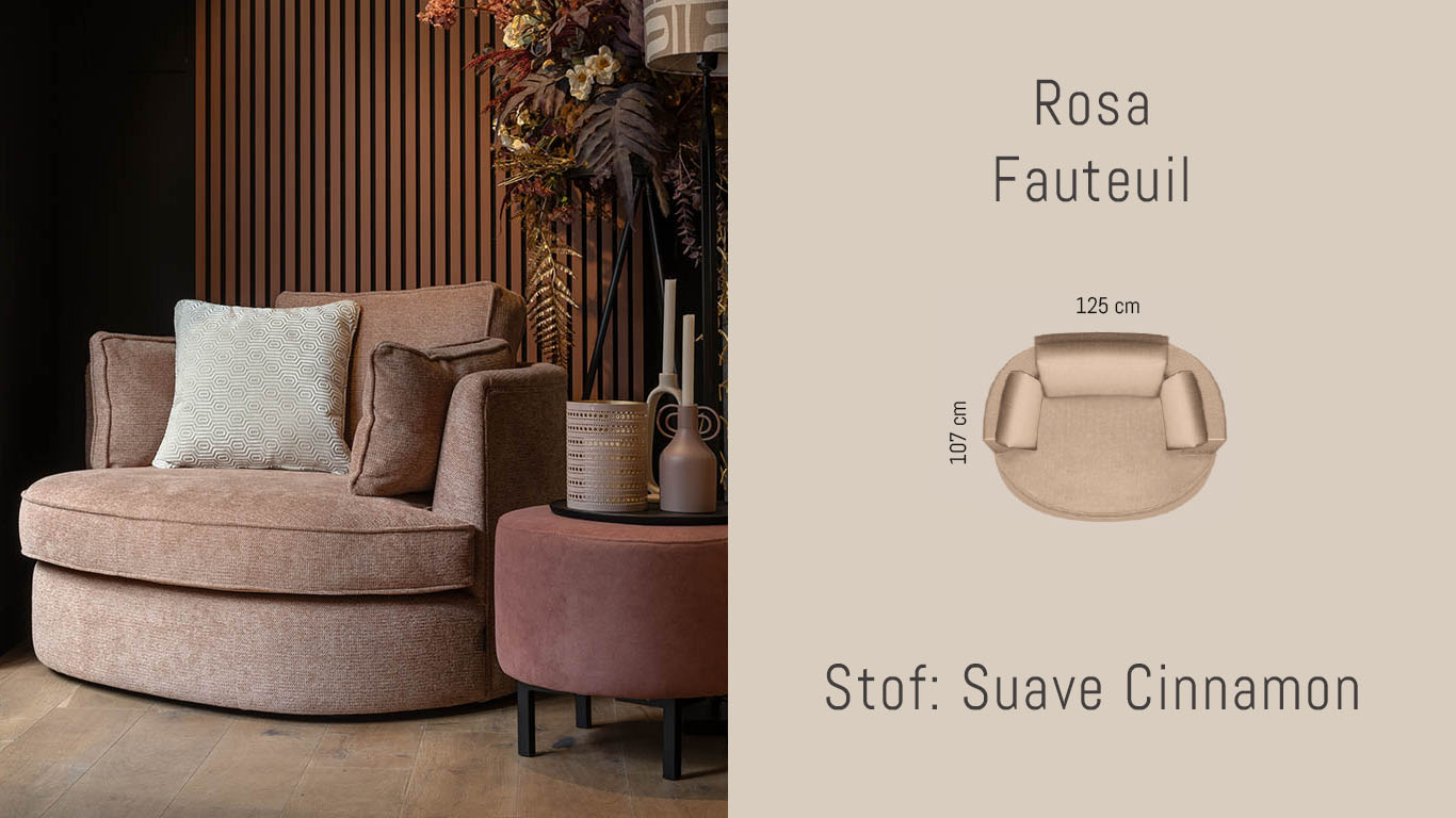 Deze Rosa fauteuil is voorzien van de prachtige Suave Cinnamon stof. Is hij zo perfect voor je? Bestel hem dan nu.
